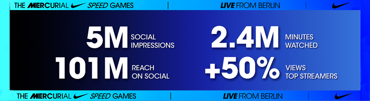 Welcome to The Mercurial Speed Games. Launching the new Mercurial by finding the fastest next gen footballers. Beamed live from Berlin, directly to retinas all over the world, the night before the Euros Final. OMG, did we just produce a high-stakes, all-out, winner-takes-all game show at extreme speed? Yes we did.