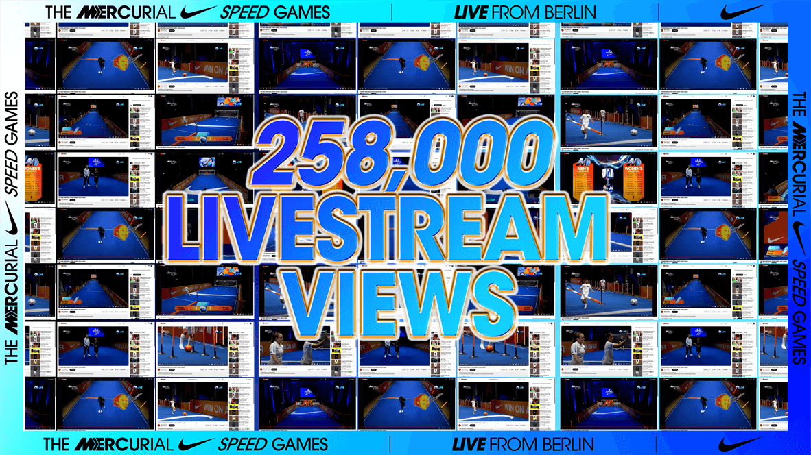 Welcome to The Mercurial Speed Games. Launching the new Mercurial by finding the fastest next gen footballers. Beamed live from Berlin, directly to retinas all over the world, the night before the Euros Final. OMG, did we just produce a high-stakes, all-out, winner-takes-all game show at extreme speed? Yes we did.